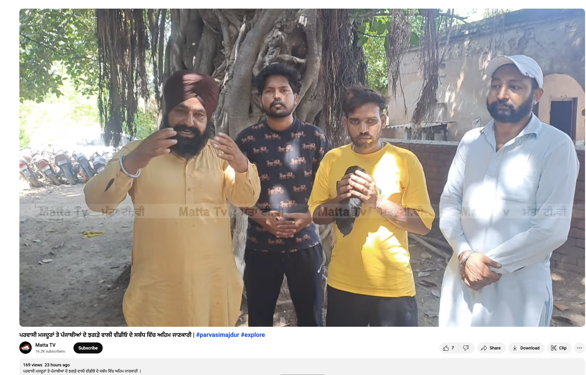 ਇਸ ਵਿਚਾਲੇ ਸੋਸ਼ਲ ਮੀਡਿਆ ਤੇ ਇੱਕ ਵੀਡੀਓ ਵਾਇਰਲ ਹੋ ਰਹੀ ਹੈ ਜਿਸ ਵਿੱਚ ਇੱਕ ਵਿਅਕਤੀ ਦੂਜੇ ਵਿਅਕਤੀ ਨੂੰ ਧਮਕੀ ਦਿੰਦਿਆਂ ਸੁਣਿਆ ਜਾ ਸਕਦਾ ਹੈ। ਦਾਅਵਾ ਕੀਤਾ ਜਾ ਰਿਹਾ ਹੈ ਕਿ ਰੇਹੜੀ ਲਗਾਉਣ ਵਾਲੇ ਪ੍ਰਵਾਸੀ ਨੇ ਪੰਜਾਬੀਆਂ ਬਾਰੇ ਅਪਸ਼ਬਦ ਕਹੇ। ਇਸ ਵੀਡੀਓ ਨੂੰ ਅਸਲ ਦੱਸਦਿਆਂ ਸੋਸ਼ਲ ਮੀਡਿਆ ਤੇ ਖੂਬ ਸ਼ੇਅਰ ਕੀਤਾ ਜਾ ਰਿਹਾ ਹੈ।