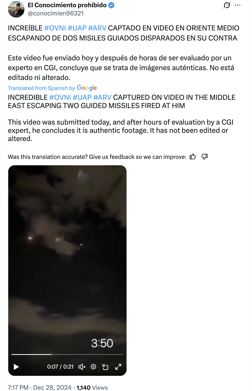 ਆਪਣੀ ਸਰਚ ਦੇ ਦੌਰਾਨ ਸਾਨੂੰ ਅਰਬ ਦੇ ਫੈਕਟ ਚੈਕਿੰਗ ਸੰਸਥਾਨ ਮਿਸਬਾਰ ਦੀ ਇੱਕ ਰਿਪੋਰਟ ਮਿਲੀ। ਇਸ ਰਿਪੋਰਟ ਦੇ ਮੁਤਾਬਕ ਇਹ ਵੀਡੀਓ ਯਮਨ ਇਜਰਾਇਲ ਸੰਘਰਸ਼ ਦੀ ਹੈ। ਰਿਪੋਰਟ ਮੁਤਾਬਿਕ ਇਹ ਵੀਡੀਓ ਇਜਰਾਇਲ ਦੇ ਸ਼ਹਿਰ ਤੇਲ ਅਵੀਵ ਤੇ 21 ਦਸੰਬਰ ਨੂੰ ਹੋਥੀ ਦੁਆਰਾ ਮਿਜ਼ਾਇਲ ਨਾਲ ਕੀਤੇ ਗਏ ਹਮਲੇ ਦੀ ਹੈ।