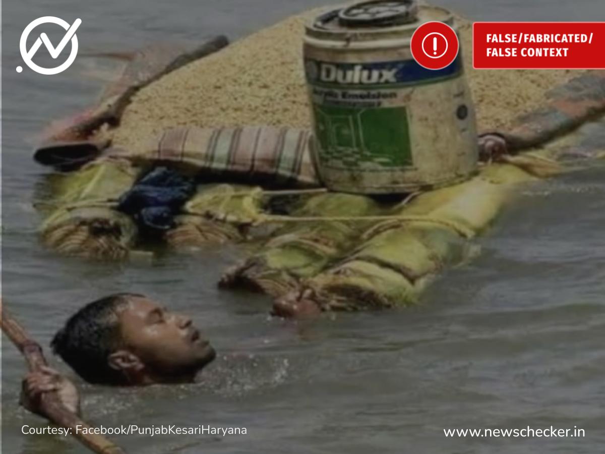 ਹੜ੍ਹ ਦੇ ਵਿਚਕਾਰ ਬੇੜੀ ‘ਤੇ ਅਨਾਜ਼ ਲਿਜਾਂਦੇ ਵਿਅਕਤੀ ਦੀ ਤਸਵੀਰ ਪੰਜਾਬ ਦੀ ਹੈ?