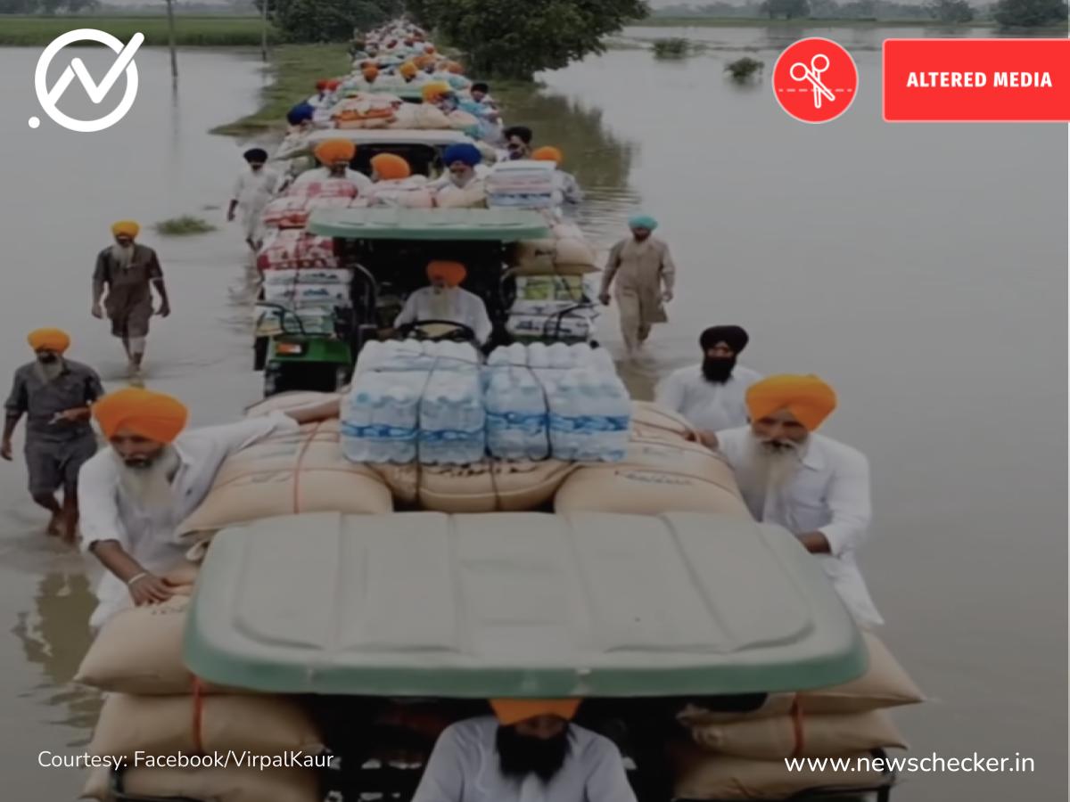 ਹੜ੍ਹ ਦੇ ਪਾਣੀ ਵਿਚਕਾਰ ਅਨਾਜ ਅਤੇ ਰਾਸ਼ਨ ਲਿਜਾ ਰਹੇ ਟਰੈਕਟਰਾਂ ਦੀ ਇਹ ਵਾਇਰਲ ਵੀਡੀਓ AI ਜਨਰੇਟਡ ਹੈ