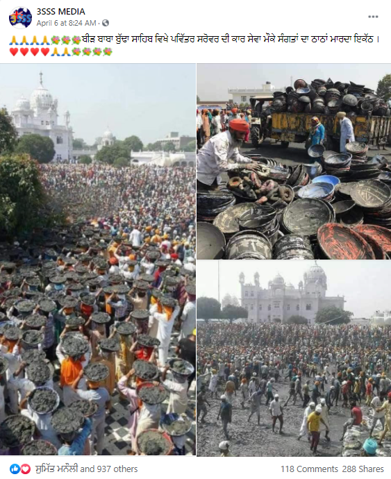 ਸੋਸ਼ਲ ਮੀਡੀਆ ਤੇ ਗੁਰਦੁਆਰਾ ਬੀੜ ਬਾਬਾ ਬੁੱਢਾ ਸਾਹਿਬ ਦੀਆਂ ਤਸਵੀਰਾਂ ਵਾਇਰਲ ਹੋ ਰਹੀਆਂ ਹਨ। ਵਾਇਰਲ ਹੋ ਰਹੀ ਤਸਵੀਰਾਂ ਦੇ ਵਿਚ ਸੰਗਤਾਂ ਨੂੰ ਸੇਵਾ ਕਰਦੇ ਹੋਏ ਦੇਖਿਆ ਜਾ ਸਕਦਾ ਹੈ। ਵਾਇਰਲ ਹੋ ਰਹੀਆਂ ਤਸਵੀਰਾਂ ਨੂੰ ਹਾਲਤ ਦੱਸ ਕੇ ਸ਼ੇਅਰ ਕੀਤਾ ਜਾ ਰਿਹਾ ਹੈ।