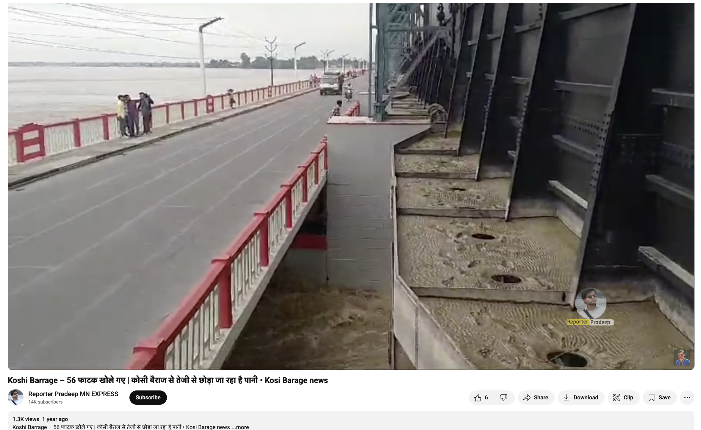 ਸਰਚ ਦੇ ਦੌਰਾਨ ਸਾਨੂੰ ਵਾਇਰਲ ਵੀਡੀਓ ਦੇ ਨਾਲ ਮਿਲਦੀ ਜੁਲਦੀ ਵੀਡੀਓ ਫੇਸਬੁੱਕ ਪੇਜ ਕੋਸ਼ੀ ਬੈਰਾਜ ਤੇ ਸਤੰਬਰ 28, 2024 ਨੂੰ ਅਪਲੋਡ ਮਿਲੀ। ਸਾਨੂੰ ਵਾਇਰਲ ਵੀਡੀਓ ਤੇ ਇਸ ਵੀਡੀਓ ਵਿੱਚ ਕਈ ਸਮਾਤਾਵਾਂ ਦੇਖੀਆਂ। ਅਸੀਂ ਪਾਇਆ ਕਿ ਇਸ ਪੇਜ ਤੇ ਕੋਸ਼ੀ ਬੈਰਾਜ ਦੀਆਂ ਵੀਡੀਓ ਅਪਲੋਡ ਕੀਤੀਆਂ ਜਾਂਦੀਆਂ ਹਨ। ਕੋਸ਼ੀ ਬੈਰਾਜ ਭਾਰਤ ਦੀ ਸਰਹੱਦ ਦੇ ਨੇੜੇ ਨੇਪਾਲ ਦੇ ਭੀਮਨਗਰ ਵਿਖੇ ਸਥਿਤ ਹੈ।
