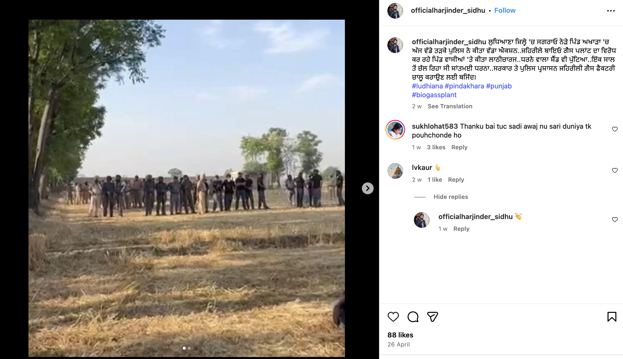 Instagram post by Harjinder Sidhu, Dated April 26, 2025