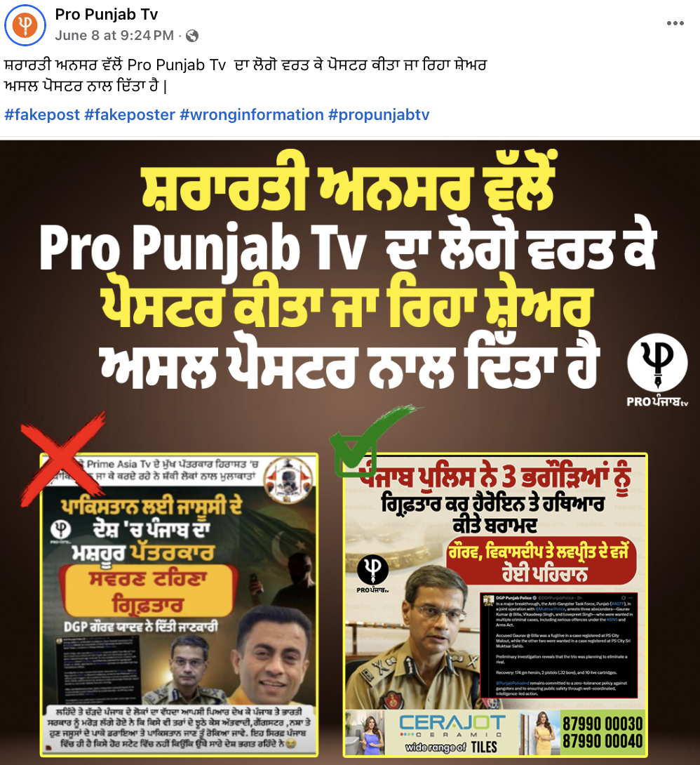 Facebook post by Pro Punjab TV, Dated June 8, 2025
