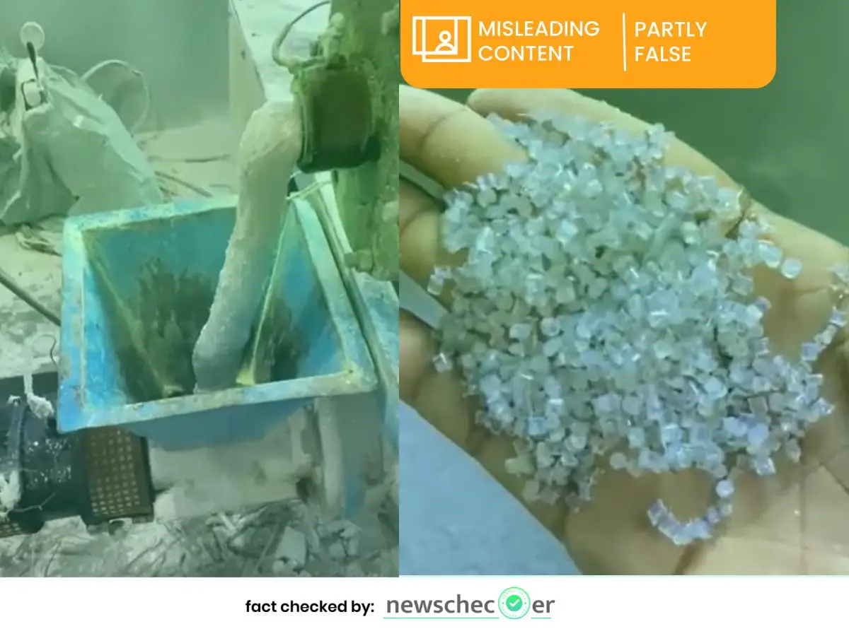 ਸਾਡੀ ਜਾਂਚ ਤੋਂ ਸਪੱਸ਼ਟ ਹੁੰਦਾ ਹੈ ਕਿ ਸੋਸ਼ਲ ਮੀਡੀਆ ਤੇ ਵਾਇਰਲ ਵੀਡੀਓ ਨਾਲ ਕੀਤਾ ਜਾ ਰਿਹਾ ਦਾਅਵਾ ਗੁੰਮਰਾਹਕੁਨ ਹੈ। ਵਾਇਰਲ ਵੀਡੀਓ ਵਿੱਚ ਥਰਮਾਕੋਲ ਤੋਂ ਪਲਾਸਟਿਕ ਦੇ ਦਾਣੇ ਬਣਾਏ ਜਾ ਰਹੇ ਹਨ।