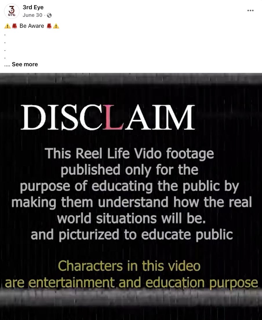 ਸਾਨੂੰ ਵੀਡੀਓ ਦੇ ਅਖੀਰ ‘ਚ Disclaimer ਮਿਲਿਆ ਜਿਸ ਵਿਚ ਦੱਸਿਆ ਗਿਆ ਕਿ ਇਹ ਵੀਡੀਓ ਇੱਕ ਸਕ੍ਰਿਪਟਿਡ ਨਾਟਕ ਹੈ ਜਿਸਨੂੰ ਮਨੋਰੰਜਨ ਦੇ ਅਧਾਰ ‘ਤੇ ਬਣਾਇਆ ਗਿਆ ਸੀ।