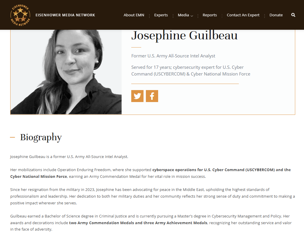 ਉਪਰੋਕਤ ਜਾਣਕਾਰੀ ਦੇ ਮੁਤਾਬਕ, ਕੈਪਟਨ ਜੋਸਫੀਨ ਗਿਲਬੋ ਨੇ ਯੂਕਰੇਨ ਯੁੱਧ ਕਾਰਨ 17 ਸਾਲ ਦੀ ਸੇਵਾ ਤੋਂ ਬਾਅਦ ਅਮਰੀਕੀ ਫੌਜ ਤੋਂ ਅਸਤੀਫਾ ਦੇ ਦਿੱਤਾ ਸੀ। ਇਸ ਤੋਂ ਪਹਿਲਾਂ, ਉਹਨਾਂ ਨੇ ਅਮਰੀਕੀ ਫੌਜ ਵਿੱਚ ਕੈਪਟਨ ਵਜੋਂ ਸੇਵਾ ਨਿਭਾਈ ਅਤੇ ਅਮਰੀਕੀ ਐਨਐਸਏ ਦੀ ਮੈਂਬਰ ਵਜੋਂ ਸੇਵਾ ਨਿਭਾਈ। ਉਹਨਾਂ ਨੂੰ ਕਈ ਫੌਜੀ ਮੈਡਲਾਂ ਨਾਲ ਵੀ ਸਨਮਾਨਿਤ ਕੀਤਾ ਗਿਆ ਹੈ।