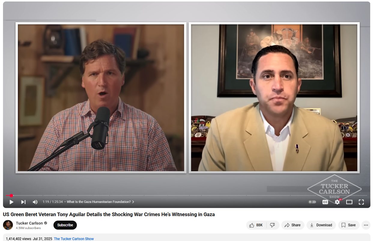 Tcuker Carlson interview with Green Beret Lt. CoL Aguilar on 31st July 2025