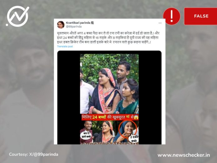 ਸੋਸ਼ਲ ਮੀਡੀਆ ‘ਤੇ ਇਕ ਪੋਸਟ ਰਾਹੀਂ ਦਾਅਵਾ ਕੀਤਾ ਜਾ ਰਿਹਾ ਹੈ ਕਿ ਵੀਡੀਓ ‘ਚ ਨਜ਼ਰ ਆ ਰਹੀ ਹਿੰਦੂ ਮਹਿਲਾ 24 ਬੱਚਿਆਂ ਦੀ ਮਾਂ ਹੈ। ਵੀਡੀਓ ‘ਚ ਔਰਤ ਦੱਸਦੀ ਹੈ ਕਿ 24 ਬੱਚਿਆਂ ‘ਚੋਂ 16 ਲੜਕੇ ਅਤੇ 8 ਲੜਕੀਆਂ ਹਨ, ਜਿਨ੍ਹਾਂ ‘ਚੋਂ ਸਭ ਤੋਂ ਵੱਡਾ ਬੱਚਾ 18 ਸਾਲ ਦਾ ਅਤੇ ਸਭ ਤੋਂ ਛੋਟਾ 1 ਸਾਲ ਦਾ ਹੈ। ਹਿੰਦੂ ਔਰਤ ਦੇ 24 ਬੱਚੇ ਹੋਣ ਦੇ ਦਾਅਵੇ ਨਾਲ ਵਾਇਰਲ ਹੋ ਰਹੀ ਵੀਡੀਓ ਸਕ੍ਰਿਪਟਿਡ ਹੈ।