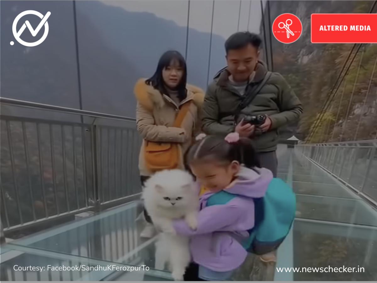 ਸੋਸ਼ਲ ਮੀਡਿਆ ਤੇ ਇੱਕ ਵੀਡੀਓ ਵਾਇਰਲ ਹੋ ਰਹੀ ਹੈ ਜਿਸ ਵਿੱਚ ਇੱਕ ਬੱਚੀ ਨੂੰ ਗਲਾਸ ਦੇ ਪੁੱਲ ਤੋਂ ਨੀਚੇ ਗਿਰਦਿਆਂ ਦੇਖਿਆ ਜਾ ਸਕਦਾ ਹੈ। ਇਸ ਵੀਡੀਓ ਨੂੰ ਅਸਲ ਦੱਸਦਿਆਂ ਸੋਸ਼ਲ ਮੀਡਿਆ ਤੇ ਸ਼ੇਅਰ ਕੀਤਾ ਜਾ ਰਿਹਾ ਹੈ। ਵਾਇਰਲ ਹੋ ਰਹੀ ਵੀਡੀਓ AI ਦੁਆਰਾ ਤਿਆਰ ਕੀਤੀ ਗਈ ਹੈ।