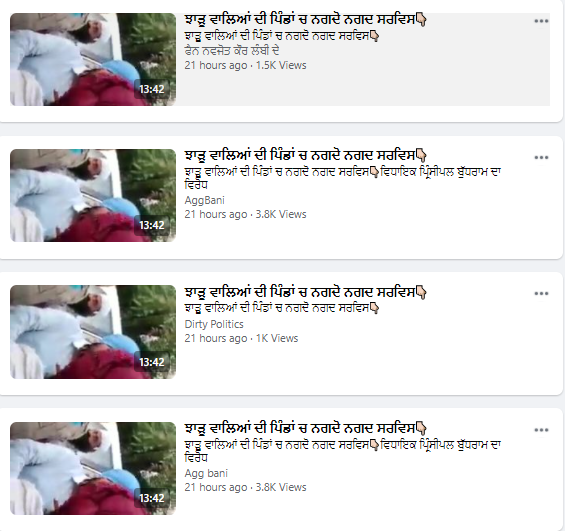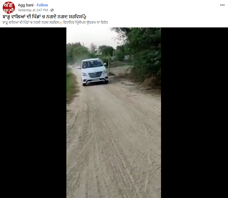 ਫੇਸਬੁਕ ਪੇਜ ਅੱਗ ਬਾਣੀ ਨੇ ਇਸ ਵੀਡੀਓ ਨੂੰ ਅਪਲੋਡ ਕਰਦੇ ਹੋਏ ਲਿਖਿਆ,”ਝਾੜੂ ਵਾਲਿਆਂ ਦੀ ਪਿੰਡਾਂ ਚ ਡਗਰੂ ਸਰਵਿਸ”।