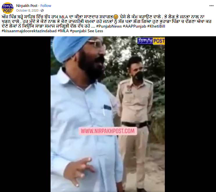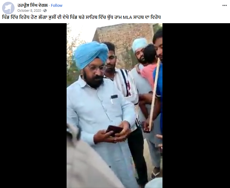 ਸੋਸ਼ਲ ਮੀਡੀਆ ਤੇ ਇਕ ਵੀਡੀਓ ਵਾਇਰਲ ਹੋ ਰਹੀ ਹੈ ਜਿਸ ਵਿੱਚ ਕੁਝ ਲੋਕ ਆਮ ਆਦਮੀ ਪਾਰਟੀ ਤੇ ਬੁਢਲਾਡਾ ਤੋਂ ਵਿਧਾਇਕ ਪ੍ਰਿੰਸੀਪਲ ਬੁੱਧਰਾਮ ਦਾ ਵਿਰੋਧ ਕਰਦੇ ਹੋਏ ਦੇਖੇ ਜਾ ਸਕਦੇ ਹਨ। ਸੋਸ਼ਲ ਮੀਡੀਆ ਤੇ ਵਾਇਰਲ ਵੀਡੀਓ ਨੂੰ ਹਾਲ ਦਾ ਦੱਸ ਕੇ ਸ਼ੇਅਰ ਕੀਤਾ ਜਾ ਰਿਹਾ ਹੈ।