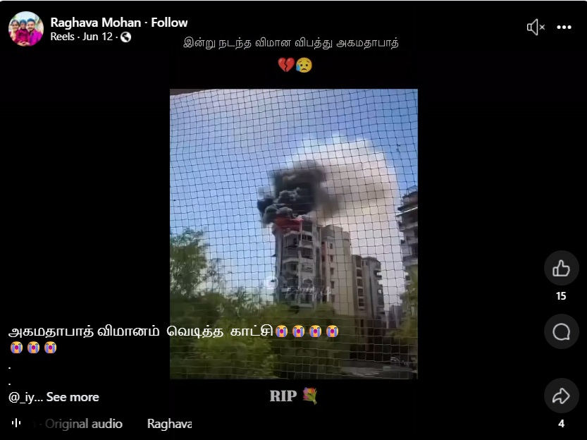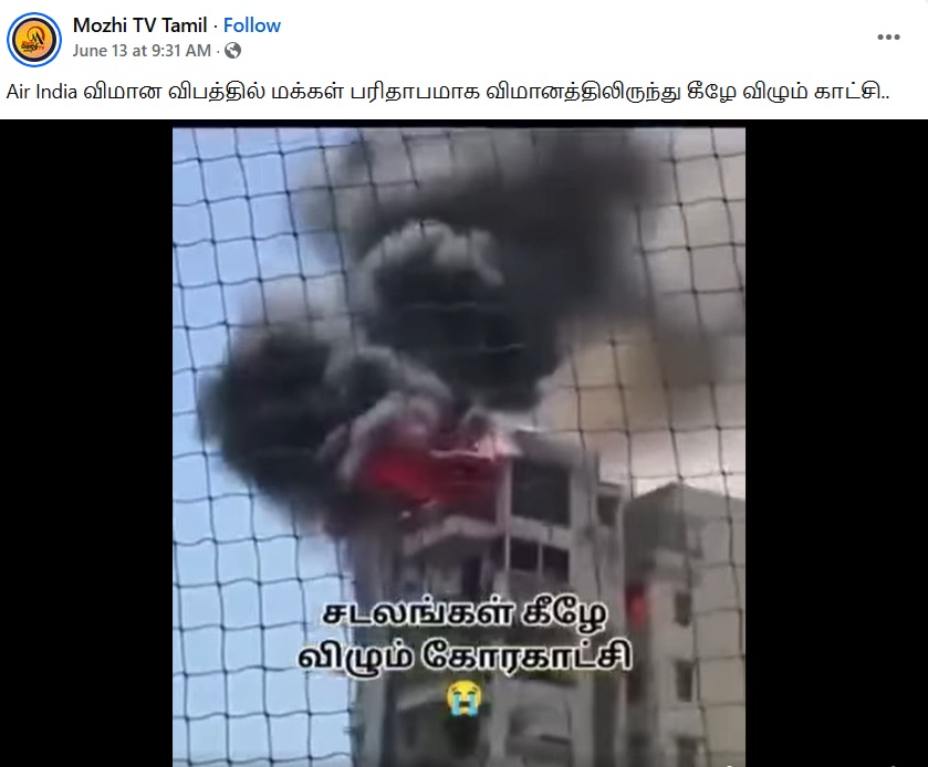 அகமதாபாத் விமானம் வெடித்த காட்சி என்று பரவும் வீடியோ குறித்த உண்மையறிய அதுபற்றிய ஆய்வில் ஈடுபட்டோம்.