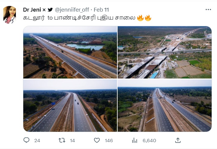 கடலூர்-புதுச்சேரி புதிய நெடுஞ்சாலை என்பதாக பகிரப்படும் புகைப்படங்கள் சமூக வலைத்தளத்தில் பகிரப்பட்ட நிலையில் அதுகுறித்த ஆய்வில் ஈடுபட்டோம்.