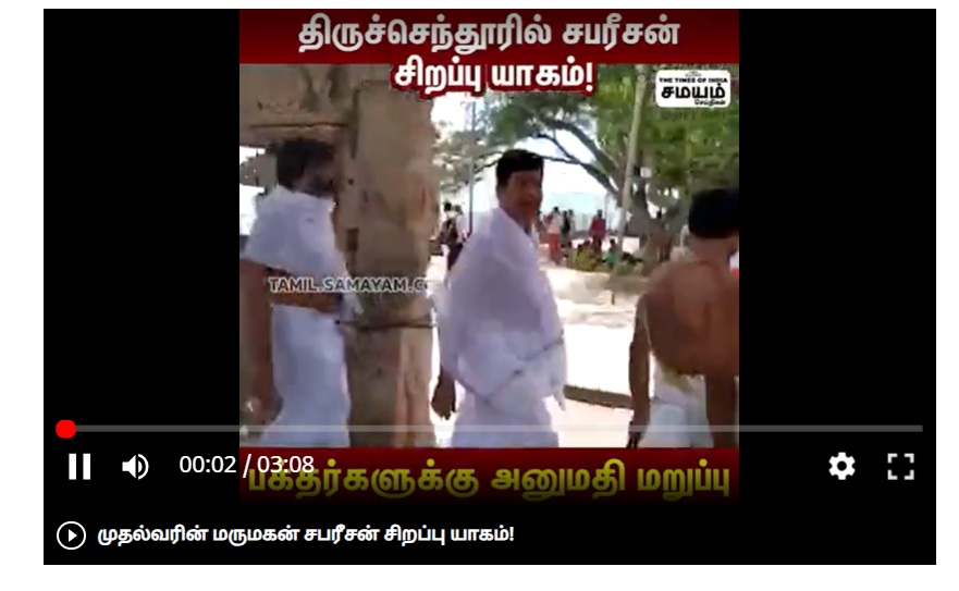அவர் திருச்செந்தூரில் நடந்து செல்லும் அப்புகைப்படத்தின் முழுமையான வீடியோ காட்சி சமயம் ஊடகத்தில் இடம்பெற்றிருந்தது.