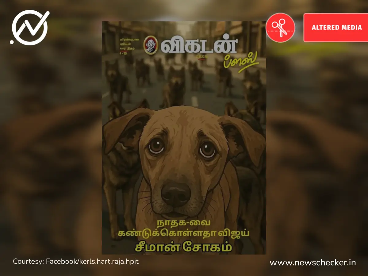 சீமானை நாய் என்று குறிப்பிட்டு விகடன் அட்டைப்படம் வெளியிட்டதாக பரவும் புகைப்படம் எடிட் செய்யப்பட்டதாகும்.