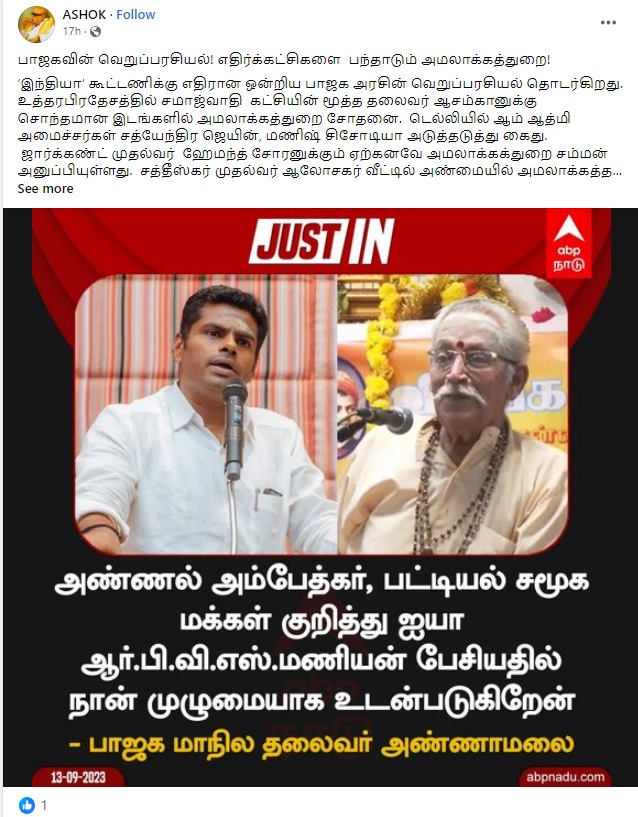 Facebook Post From, ABP Nadu, Dated September 14, 2023
