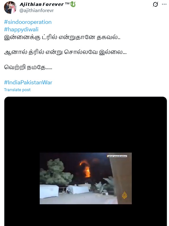 இந்திய ராணுவத்தின் ஆபரேஷன் சிந்தூர் தாக்குதல் என்று வீடியோ ஒன்று சமூக வலைத்தளங்களில் பரவி வருகிறது.