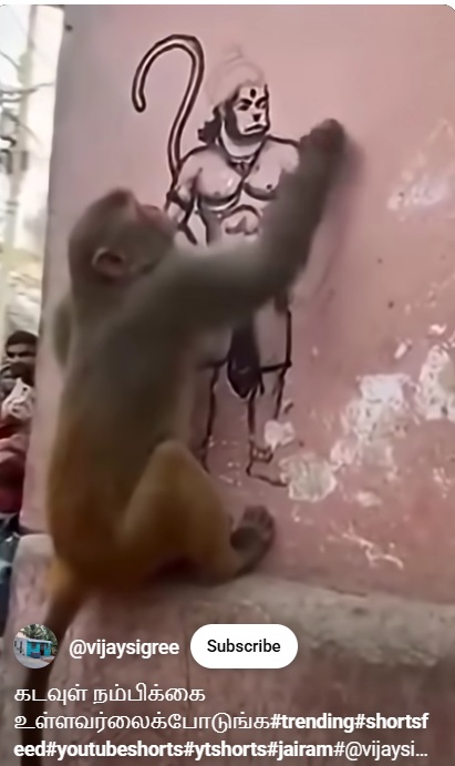 குரங்கு ஒன்று ஹனுமான் உருவத்தை வரைவதாக வீடியோ ஒன்று சமூக வலைத்தளங்களில் பரவி வருகிறது.