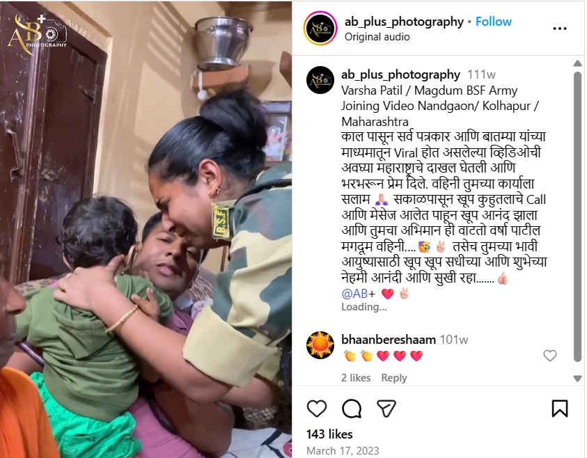 அதில், கடந்த மார்ச் 17, 2023 அன்று “Varsha Patil / Magdum BSF Army Joining Video Nandgaon/ Kolhapur / Maharashtra” என்று இந்த வீடியோ இடம்பெற்றிருந்தது. அதுமட்டுமின்றி, Kolhapur Lady Soldier Viral : Varsha Patil என்று இந்த வீடியோ கடந்த 2023ஆம் ஆண்டே செய்தி ஊடகங்களில் வெளியாகியிருந்தது.