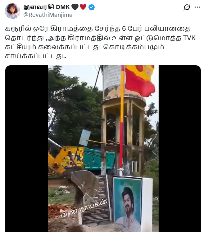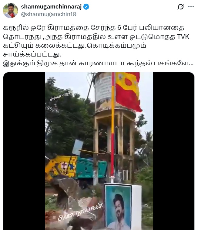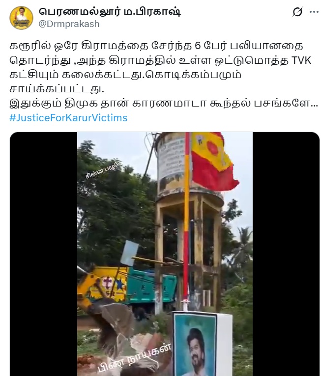 ”கரூரில் ஒரே கிராமத்தை சேர்ந்த 6 பேர் பலியானதை தொடர்ந்து ,அந்த கிராமத்தில் உள்ள ஒட்டுமொத்த TVK கட்சியும் கலைக்கட்டது.கொடிக்கம்பமும் சாய்க்கப்பட்டது.