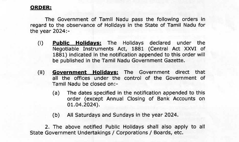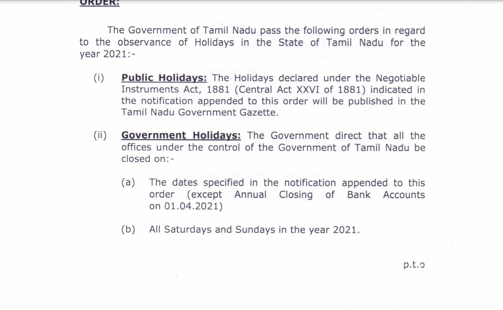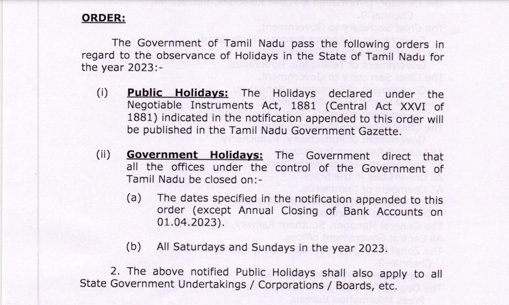 தொடர்ந்து இதுகுறித்து தமிழ்நாடு முதல்வர் அலுவலக இணை இயக்குநர் கே.மாறன் அவர்களைத் தொடர்பு கொண்டு பேசியபோது, “சனி, ஞாயிறு அரசு விடுமுறை என்கிற அறிவிப்பு பல வருடங்களாகவே தமிழக அரசின் வருடாந்திர விடுமுறை அரசாணைகளில் இடம்பெற்றுள்ளது . இந்த அறிவிப்பு புதிதான ஒன்று அல்ல” என்று உறுதி செய்தார்.