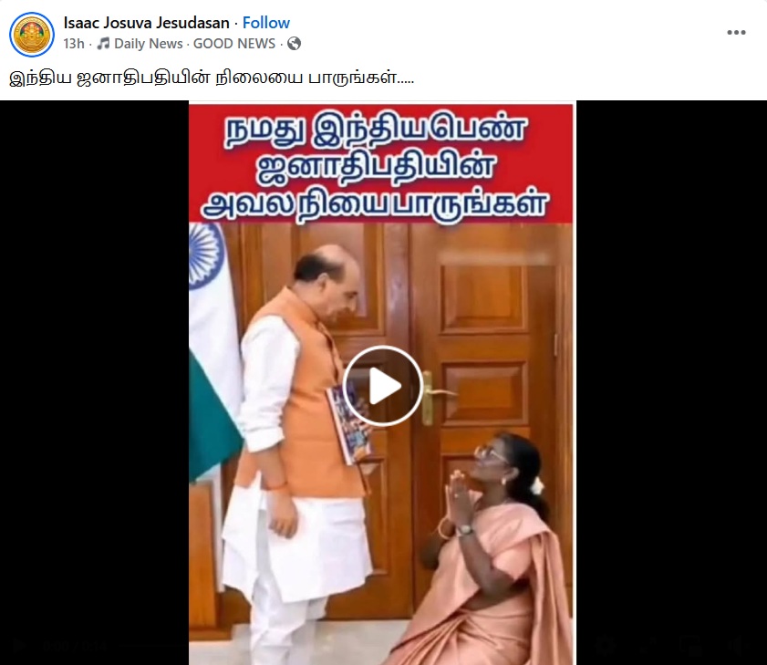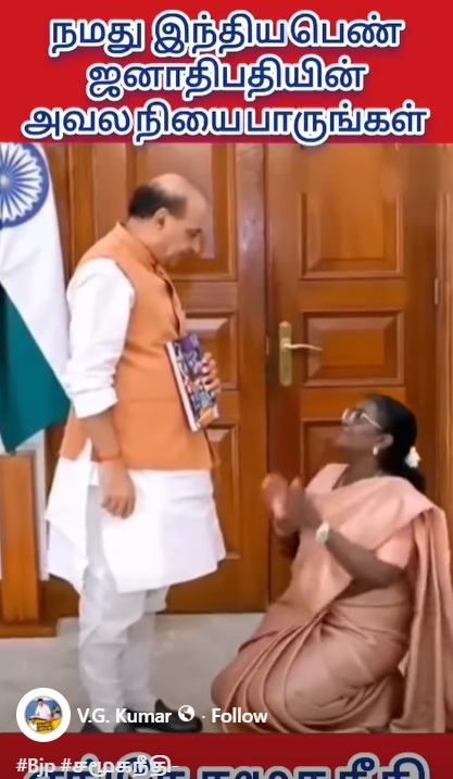 ”இந்திய ஜனாதிபதியின் நிலையை பாருங்கள்” என்று இந்த வீடியோ பரவுகிறது.