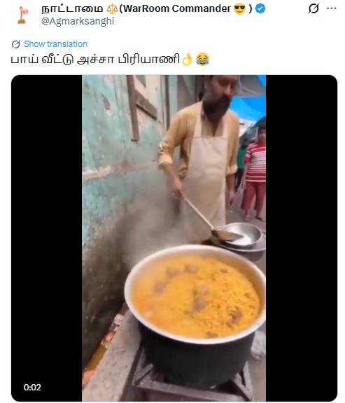 ”பாய் வீட்டு பிரியாணி,பாய் கடை பிரியாணின்னு நாக்கை தொங்க போட்டு திரியும் நாய்களுக்கான பதிவு இது” என்று இந்த வீடியோ பரவுகிறது.