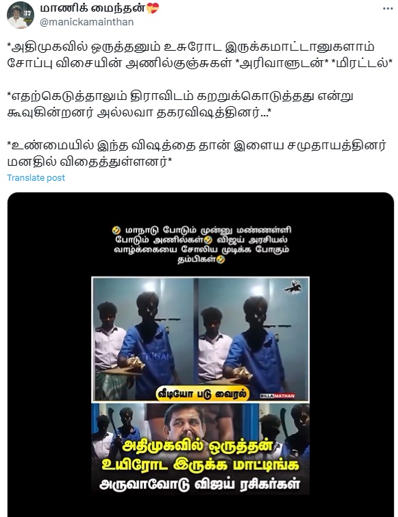 Claim: அரிவாளை காட்டி ஆபாசமாக பேசி அதிமுகவினருக்கு விஜய் ரசிகர்கள் கொலை மிரட்டல்