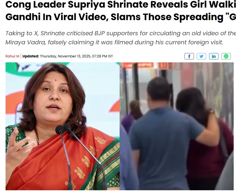 வைரலாகும் வீடியோவில் ராகுல் காந்தியுடன் இருப்பது அவரது சகோதரி பிரியங்கா காந்தியின் மகளான மிராயா வத்ரா என்பதை காங்கிரஸ் கமிட்டி தலைவரான சுப்ரியா ஷ்ரினேட் தன்னுடைய சமூக வலைத்தளப்பக்கத்தில் பகிர்ந்து அதை தவறாக பகிர்ந்தவர்களை விமர்சித்திருப்பதை நம்மால் காண முடிந்தது.