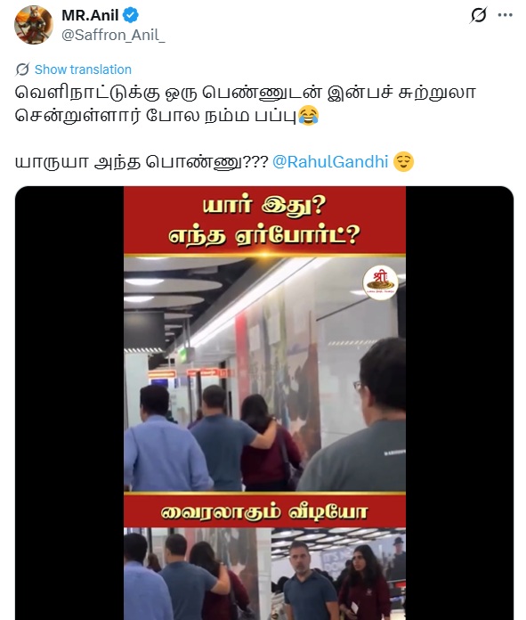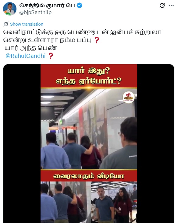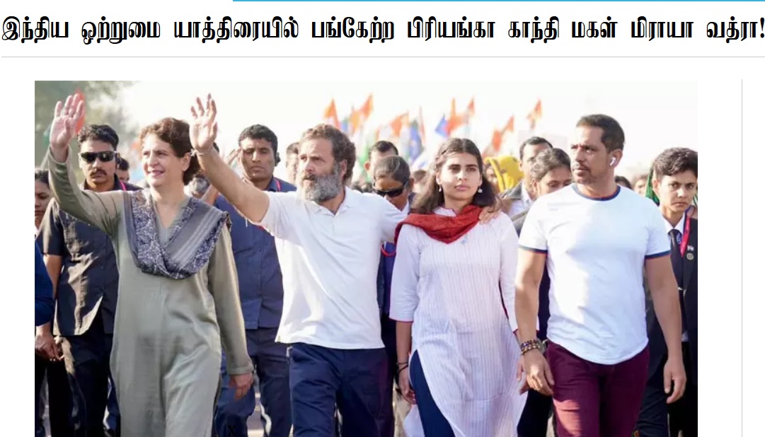 ராகுல் காந்தியின் மருமகள் மிராயாவையே தவறான நோக்கில் யாரோ ஒரு இளம்பெண்ணுடன் ராகுல் காந்தி இன்பச்சுற்றுலா என்பதாகப் பரப்பி வருகின்றனர்.