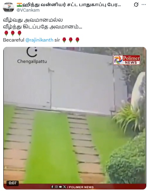 குறிப்பிட்ட வீடியோவே நடிகர் ரஜினிகாந்த் வழுக்கி விழுந்ததாக சமூக வலைத்தளங்களில் பகிரப்பட்டு வருகிறது.