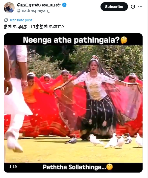 தொடர்ந்து, இந்த பாடலின் முழுமையான காட்சி Ayngaran Music பக்கத்தில் இடம்பெற்றிருந்த நிலையில் அதனை ஆராய்ந்தபோது, சீமான் என காட்டப்படும் நபர் வேறொருவர் என்பது நமக்கு உறுதியாகியது.