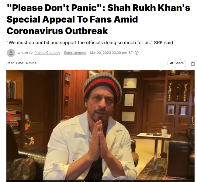 X Post From, Shah Rukh Khan, Dated March 20, 2020