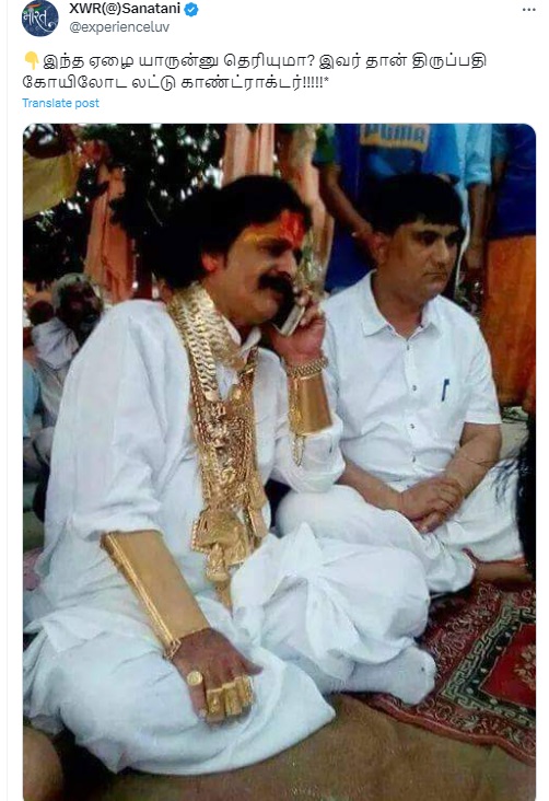 திருப்பதி கோவில் லட்டு காண்ட்ராக்டர் என்று புகைப்படம் ஒன்று சமூக வலைத்தளங்களில் பரவி வருகிறது.