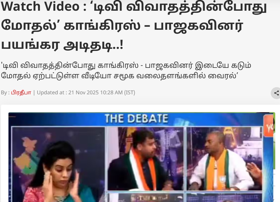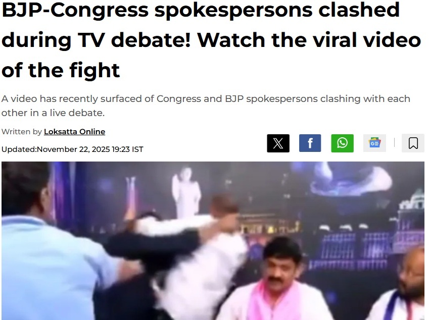 ABP நாடு ஊடகத்திலும் “டிவி விவாதத்தின்போது மோதல்’ காங்கிரஸ் – பாஜகவினர் பயங்கர அடிதடி” என்று இதுகுறித்த செய்தி வெளியாகியிருந்தது.