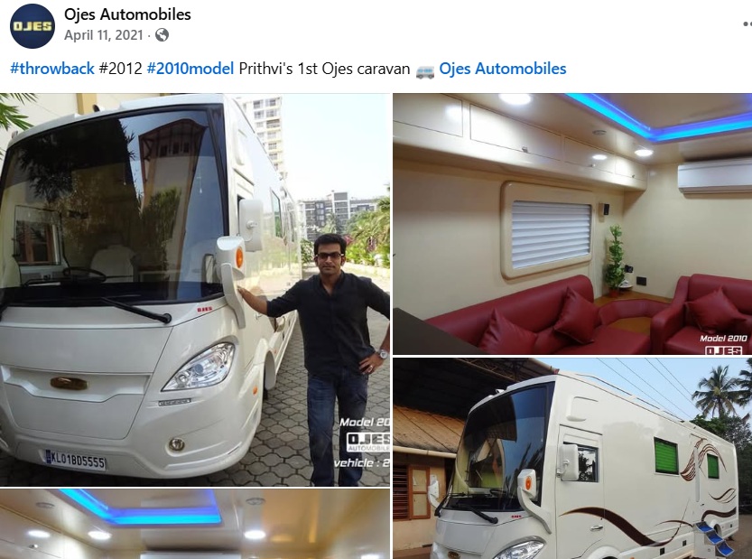 மேலும், Ojes Automobiles என்னும் சமூக வலைத்தளப்பக்கத்தில் ”பிரித்விராஜின் முதல் Ojes கேரவன்” #ThrowBack என்று இந்த புகைப்படத்தில் உள்ள அதே கேரவனுடன் பிரித்விராஜ் இருக்கும் புகைப்படமும், கேரவனின் மற்ற சில புகைப்படங்களும் இடம்பெற்றுள்ளது.