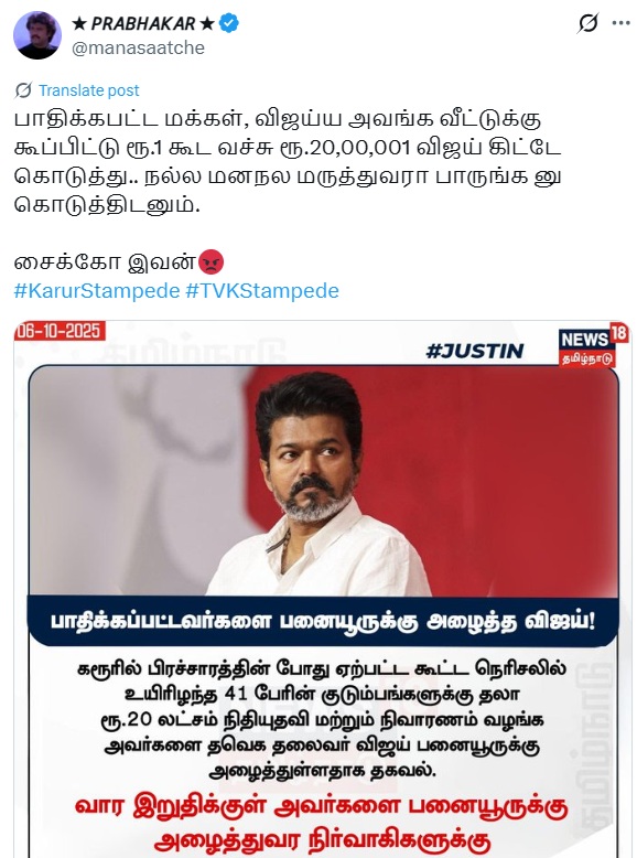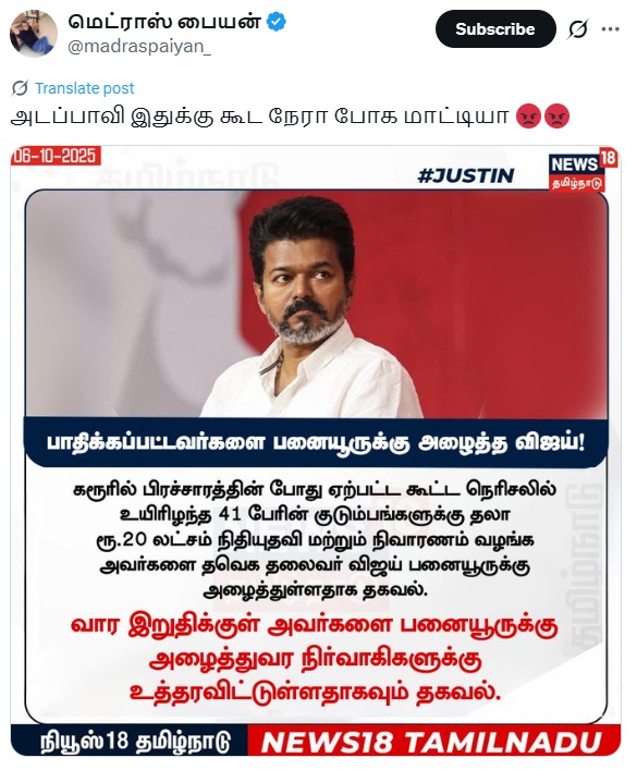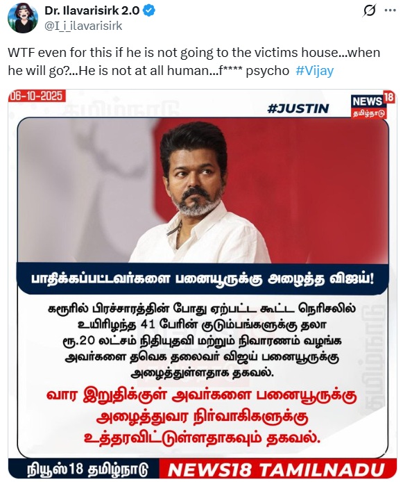 X Post From, News 18 Tamil Nadu, Dated October 07, 2025