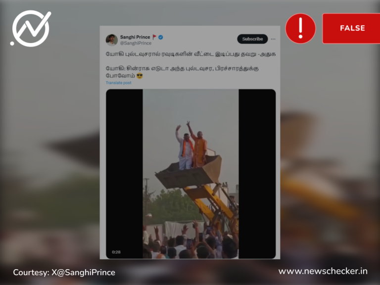 உத்திரப்பிரதேச முதலமைச்சர் யோகி ஆதித்யநாத் புல்டோசரில் நின்று பிரச்சாரம் செய்ததாக பரவும் வீடியோத்தகவல் தவறானதாகும்.