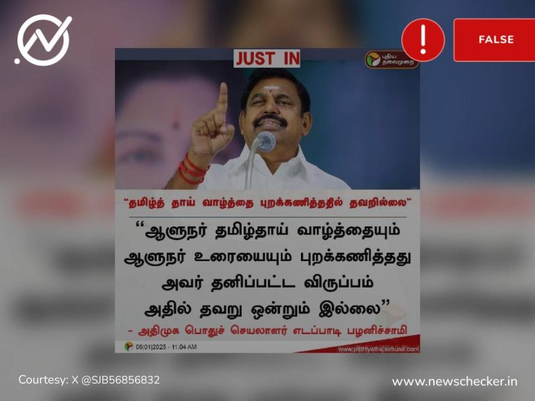 (உங்களுக்கு ஏதேனும் ஒரு தகவல் குறித்து சந்தேகம் ஏற்பட்டாலோ அல்லது ஏதாவது ஒரு தகவலின் உண்மைத்தன்மைக் குறித்து அறிய விரும்பினாலோ 9999499044 என்கிற வாட்ஸ்ஆப் எண்ணிற்கோ, அல்லது checkthis@newschecker.in என்ற மின்னஞ்சல் முகவரிக்கோ உங்கள் கேள்விகளை அனுப்பலாம்.