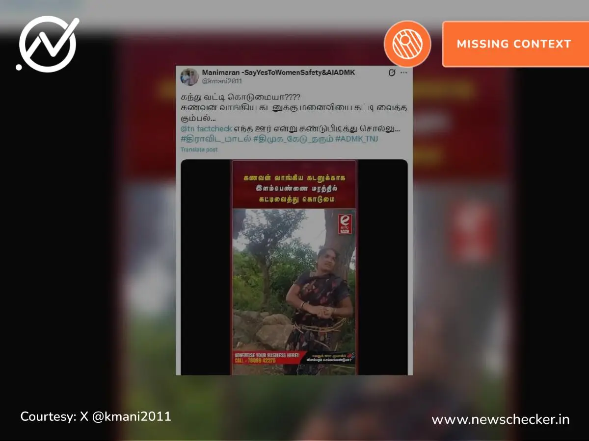 கந்துவட்டி கொடுமையால் மரத்தில் கட்டப்பட்ட பெண் என்று பரவும் வீடியோ தமிழகத்தைச் சேர்ந்ததல்ல; ஆந்திராவில் நடைபெற்ற சம்பவமாகும்.