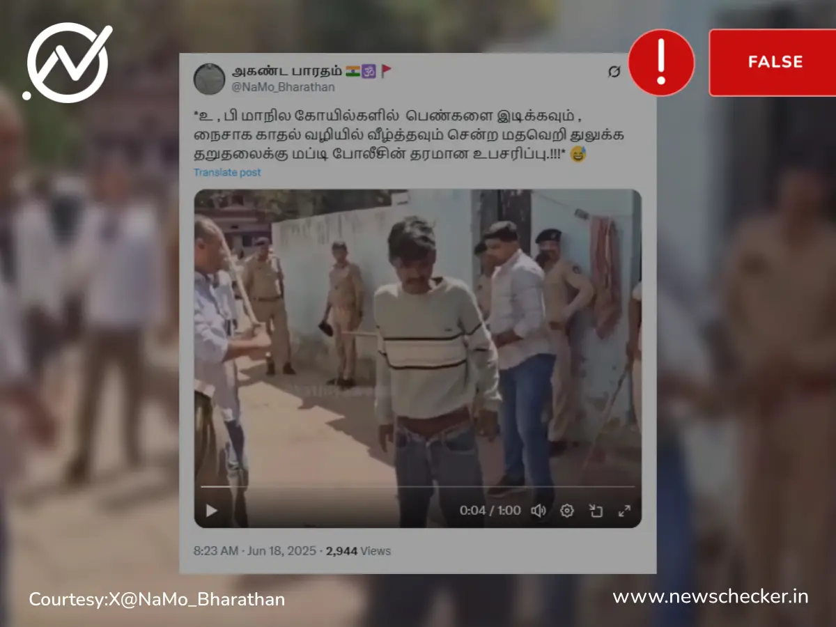 உ.பி.யில் கோயில்களில் பெண்களிடம் தவறாக நடந்துக்கொண்ட இஸ்லாமியர்களை போலீசார் தாக்கியதாக பரவும் வீடியோத்தகவல் முற்றிலும் தவறானதாகும்.