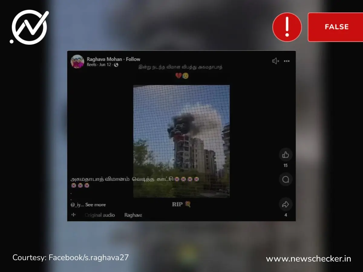 அகமதாபாத் விமானம் வெடித்த காட்சி என்று பரவும் வீடியோ டெல்லி துவாரகாவில் அடுக்குமாடி குடியிருப்பில் ஏற்பட்ட தீ விபத்துடன் தொடர்புடையதாகும்.