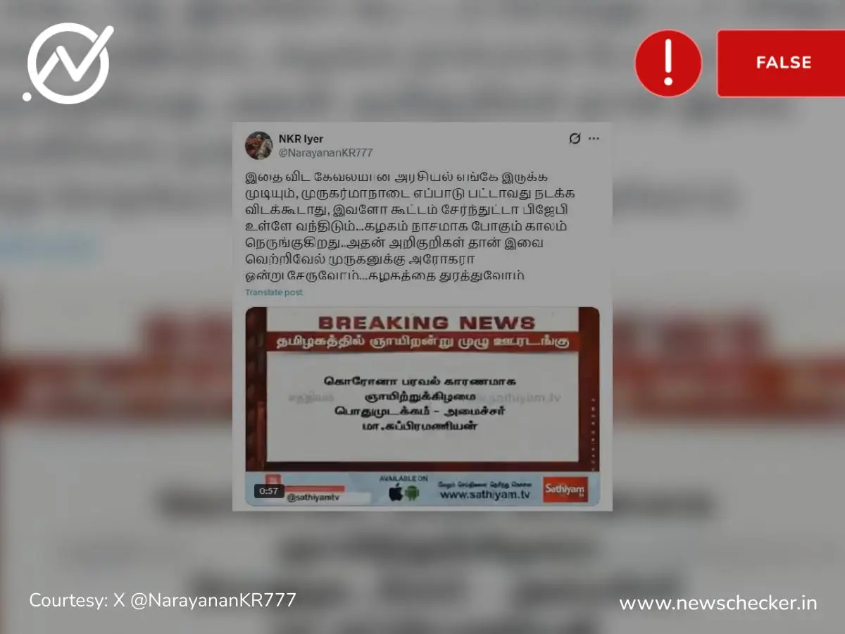 தமிழகத்தில் மீண்டும் ஞாயிறு அன்று முழு ஊரடங்கு என்று பரவும் வீடியோ கடந்த 2022ஆம் ஆண்டு வெளியானதாகும்.