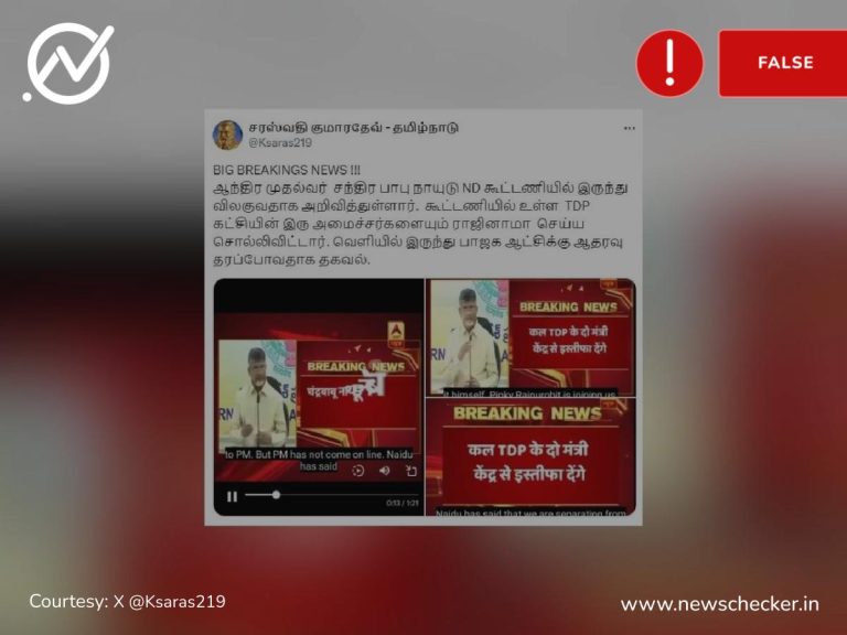 சந்திரபாபு நாயுடு NDA கூட்டணியில் இருந்து விலகுவதாகப் பரவும் புகைப்படங்கள் கடந்த 2018ஆம் ஆண்டு வெளியான செய்தியில் இருந்து எடுக்கப்பட்டவையாகும்.