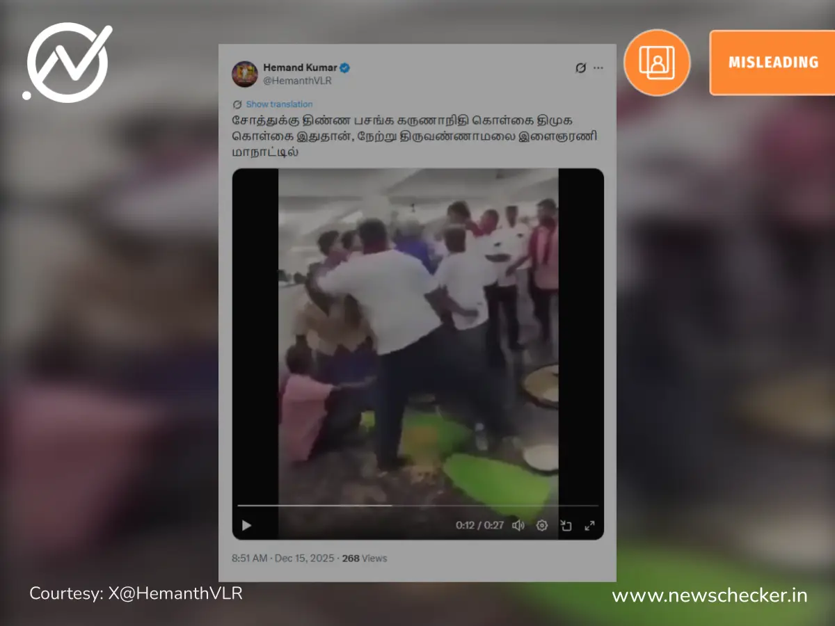 திருவண்ணாமலை இளைஞரணி மாநாட்டில் பிரியாணிக்காக திமுகவினர் அடிதடியில் ஈடுபட்டதாக பரவும் வீடியோ தகவல் தவறானதாகும்.