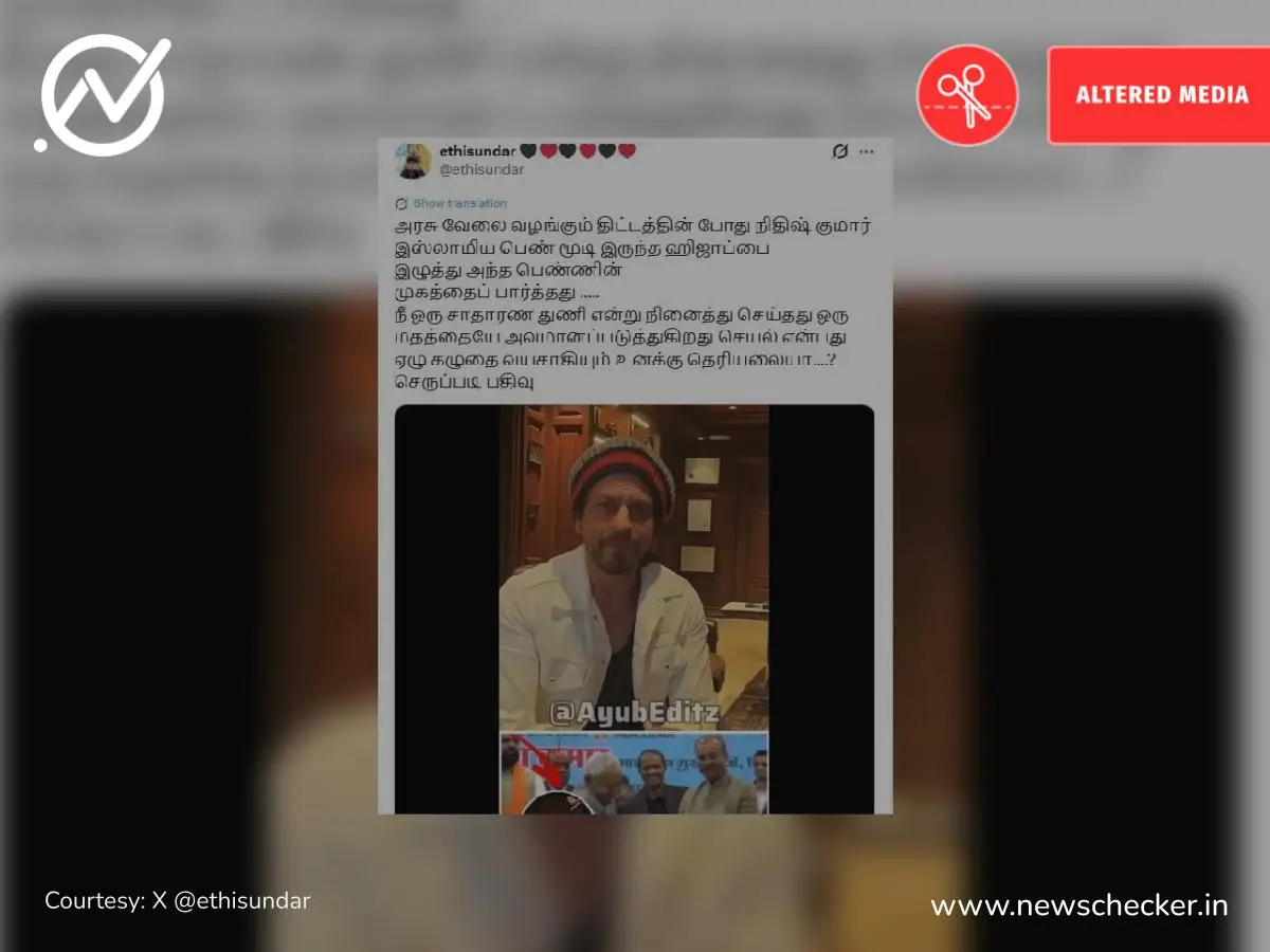 இஸ்லாமியப் பெண் மருத்துவரின் ஹிஜாபை அகற்றிய நிதிஷ் குமாருக்கு கண்டனம் தெரிவித்தாரா ஷாருக்கான்?