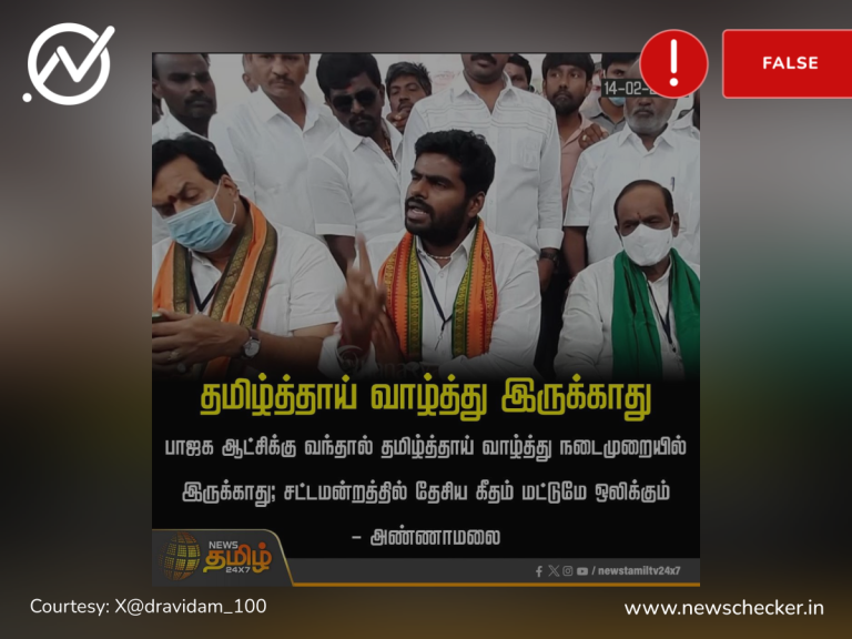 பாஜக ஆட்சிக்கு வந்தால் சட்டமன்றத்தில் தமிழ்த்தாய் வாழ்த்து ஒலிக்கப்படாது என்று அண்ணாமலை கூறியதாக பரவும் தகவல் தவறானதாகும்.