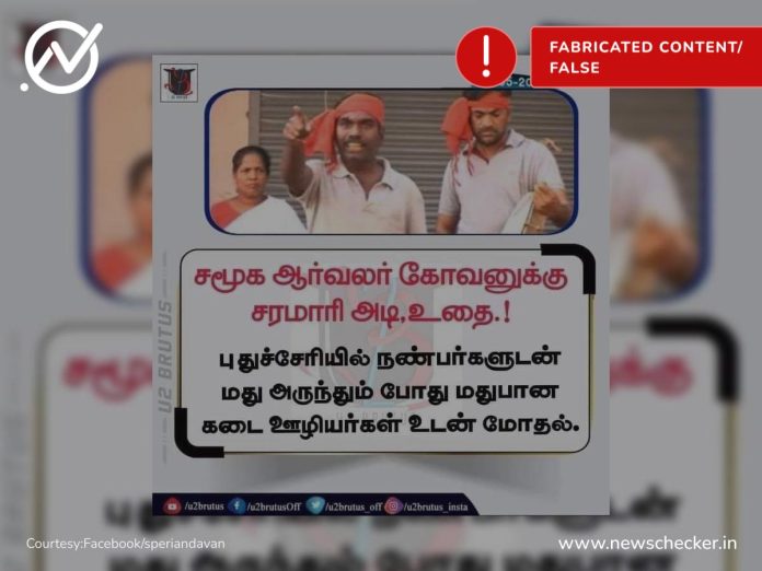 பாடகர் மற்றும் சமூக ஆர்வலரான கோவனுக்கு புதுச்சேரி மதுபானக் கடை ஒன்றில் அடி, உதை என்பதாகப் பரவிய நியூஸ்கார்டு போலியானதாகும்.