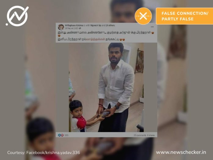 பாஜக தமிழகத் தலைவர் அண்ணாமலை மகனின் பிறந்தநாள் கொண்டாட்டம் என்பதாகப் பரவுகின்ற புகைப்படத் தகவல் தவறானதாகும்.